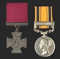 For his gallant conduct at Wesselstroom, on the 22nd February 1881, in riding, under a heavy fire, towards a party of 42 Boers, picking up Private Mayes, who was lying wounded, and carrying him safely into camp. James Osborne was invested with his Victoria Cross at Fort Napia, Natal, on the 26th April 1882. It is not known who made the presentation. |