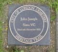 | A MEMORIAL PLAQUE HAS BEEN PLACED OVER THE PREVIOUSLY UNMARKED GRAVE OF PRIVATE JOHN SIMS VC IN THE CITY OF LONDON CEMETERY, MANOR PARK, EAST LONDON. |